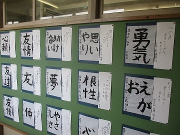 友達へ身近な人への思いや感謝、みんなが楽しくすごせるためにどうしたらよいかなど、児童の大切ねことばが書かれています。
