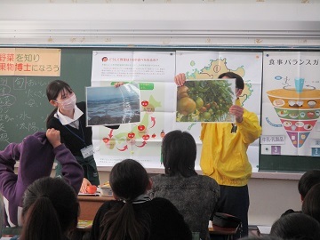 成果物健康推進協会の方から野菜のことについて教えていただき、冬には赤い野菜を食べる日があることも教えていただきました。