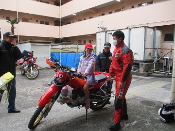 警察の方に教えていただいたポイントを守り、いつも以上に緊張しながらも出発前や信号の前などで安全を確認していました。