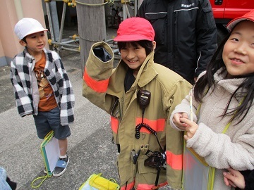 消防士の服を着させてもらったり、ボンベを背負わせてもらったり、バイクに乗せてもらったり、貴重な体験をたくさんしました。