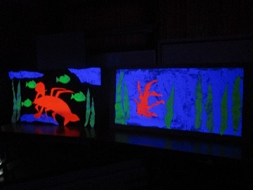 部屋を暗くすると、そこにはスイミーの世界が浮き出てきました。