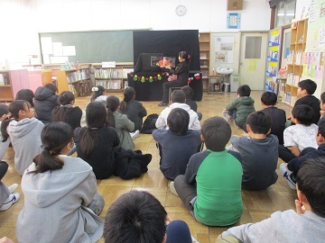 萩中小学校では、1年生から6年まで全学年で地域のボランティアの方によるお話会を行っています。