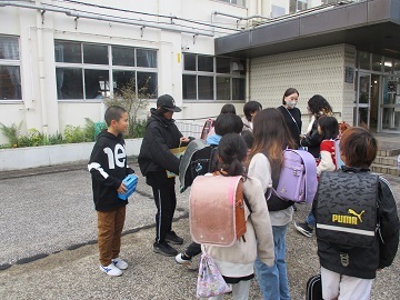 代表委員会の児童が毎朝校門に立ち、登校してくる児童にユニセフ募金を呼び掛けています。