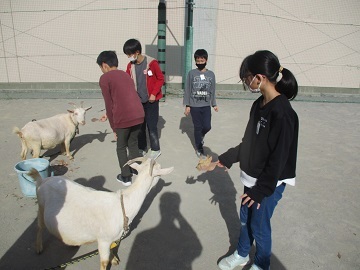 今日は、校庭の一部を使って、全校児童を対象に移動動物園を行いました。