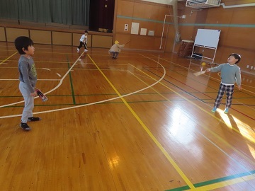 風が強かったので羽が流され、苦戦しているペアもいましたが、どの子も上手に羽を打っていました。