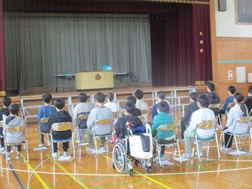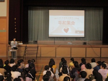 体育館に全校児童が集まり、平和集会が行われました。