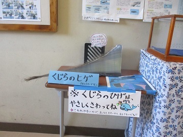 2階にある給食の見本の隣に、栄養士さんがクジラのひげが展示してくれました。