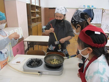 今日は、5年2組が自分たちが考えた材料で実際に佃煮を作りました。