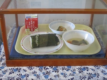 お昼の放送で給食委員から恵方巻について説明がありました。