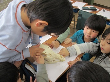 触ってみるととても硬くてびっくりします。児童もいろいろ見て、触って、本物に触れてほしいと思います。
