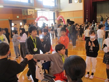全校児童に先生も加わり、ゲームを楽しみました。