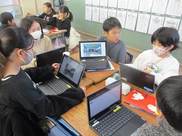 イラストや絵などを使い、グループで分担して発表している姿に、この1年間の成長を感じました。
