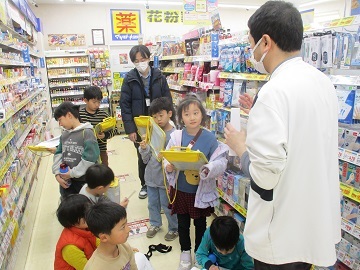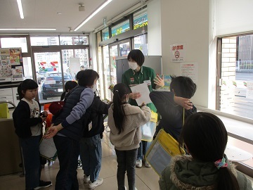 その後、3グループに分かれ、コンビニ、薬局、八百屋さんを見学しました。