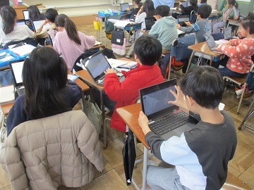 3年生がICT支援員さんと一緒にプログラミングの授業を行いました。