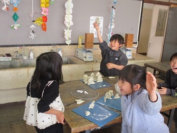 今日は、図工の授業に講師の先生をお招きし、大きな工作を作りました。