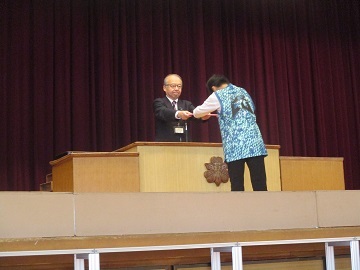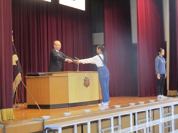 校長先生から全クラスの代表児童に修了書が手渡されました。