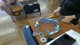 図工の「ひもひもねんど」では、グループで作りたいものを話し合って作りました。