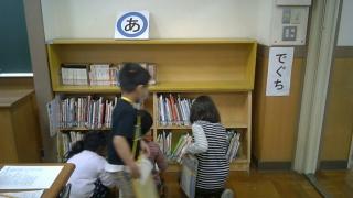 2年生に案内されて学校探検に行きました。図書室では、「おおきなき」の本を探しました。