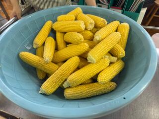 きれいな黄色のとうもろこしが出てきました。給食でおいしくいただきました。