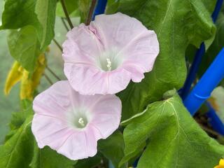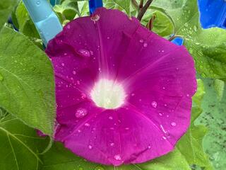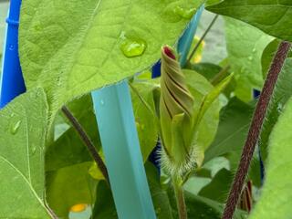 また、生活科の学習で育てているアサガオもつるが伸び、花が咲き始めてきました。子どもたちは花の色を見て、「紫色」「ピンク」などと嬉しそうに友達同士で花を見合っていました。これからも毎日欠かさず水やりをします。