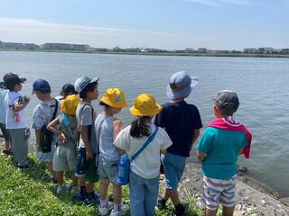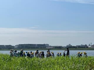 生活科の「なつとなかよし」の学習で、2年生と多摩川の河原や少し遠い公園に行きました。自然豊かな環境の中でたくさんの生物と触れ合い、夏に親しむことができました。