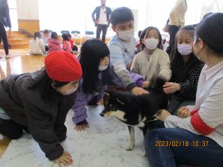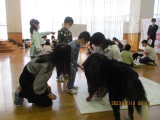 犬の触れ合い授業では、犬の気持ちを考えて触れ合うことができました。