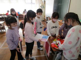 生活科では、2年生のおもちゃランドにお客さんとして招かれました。2年生手作りの、アイデア満載のおもちゃで楽しく遊びました。素敵な景品もいただき嬉しそうでした。来年同じように1年生に教える姿が今から楽しみです。