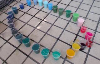絵の具で作った色を混ぜて、いろいろな色を作りました。
