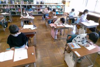 初めての書初め大会では、姿勢よく、集中して正しい字を書きました。