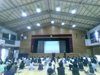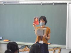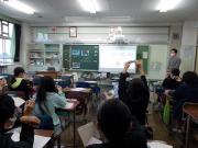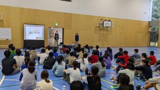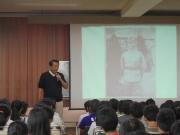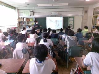 原爆先生の特別授業は、当時18歳の青年兵士が爆心地においての実話や原子爆弾の威力や構造などのお話がありました。子供たちは表面温度が7000度にもなる原子爆弾の話を聞きながら、その熱さは想像できないが、原子爆弾の恐ろしさや、戦争の怖さについて知り、もう二度と戦争がおきてほしくない、戦争のことをこれから先にも伝えていかなくてはならないと考えました。