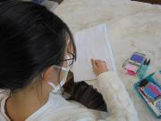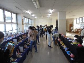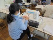 家庭科では、台ふきを作りました。この学習では、地域や学校などの様々な場所で、どんな人と関わっているのかを考え、今までどのようにお世話になってきたか、または、交流してきたかをまとめました。6年生は卒業までもう少しということで、何かできることはないか考えたときに、在校生に向けた台ふき作りを行うことに決めました。