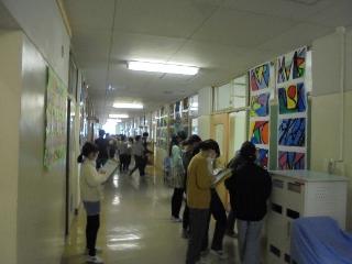 2学期から作成に取り掛かっていた作品の展示が始まりました。6年生は図工と家庭科の作品を展示しています。図工のテーマは「名前でアート」。家庭科のテーマは「思い出を形に~オリジナルバック~」です。どの作品もそれぞれの個性が溢れる作品になっています。