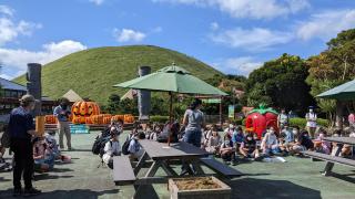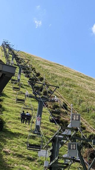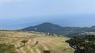 二人乗りのリフトで大室山の山頂に行き、噴火口跡のまわりを歩きました。「お鉢めぐり」と言うそうです。子供たちの「ヤッホー」という声が山に響きました。
