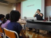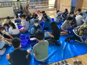 7月には着衣泳を行いました。衣服を着た状態で水に入ることで身体が動かしにくくなることを実際に体験し、水難事故にあったときの対応の仕方を学びました。ペットボトルやビニール袋が浮き具として使用できることや背浮きで救助を待つことを知り、命を守る行動について理解を深めました。