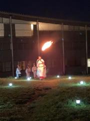 昨日の夜のキャンドルファイアーではレク係が中心になり、踊ったりゲームをしたりして盛りあがり、楽しい時間を過ごしました。