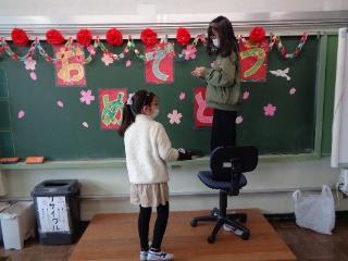 2月28日に6年生を送る会を行いました。各学年が6年生のために考え、練習してくれた出し物を子供たちは嬉しそうな表情で鑑賞していました。6年生からのお返しの出し物である「カイト」の合奏も、下学年の心に響く素晴らしいものになったと思います。