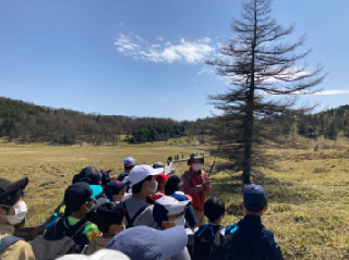 着くころには雨が止みました。霧が心配だったので、クラスごとに列になって湿原の木道を歩きました。アヤメやレンゲツツジ、ハクサンチドリなどの花がきれいでした。