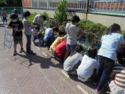 行ったことが2つあります。1つ目は、1年生の植木鉢に支柱を立てました。1年生のことを考え、大事に育てられたアサガオを折らないように作業をしている姿が頼もしかったです。2つ目は、保護者会のために、体育館に椅子を並べました。間隔を1m以上空けて並ぶよう意識をして、綺麗に並べることができました。今回は並べることを1組が担当しました。今後このような仕事がある際は、クラスごとに輪番制で担っていきます。