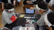 今回は、理科の学習でタブレットにより、MESHというソフトを使用してプログラミングに挑戦しました。具体的な場面は、玄関などで人を感知すると照明が光る、というようなプログラムです。