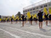 今朝のスポーツ広場での朝会では、音楽に合わせて身体を動かしました。