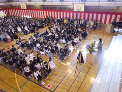 今日の音楽朝会では、全校児童が体育館に集まり校歌を元気に歌いました。そして、学年ごとにワンフレーズをうたうリレー唱を披露し、美しい歌声が体育館いっぱいに響き渡りました。