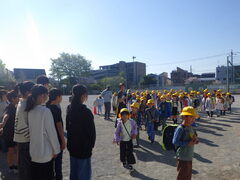 今年初めての避難訓練でした。事前に防災頭巾の被り方や廊下への整列の仕方をクラスごとに確認していました。今日は、本部を変えての集合でしたが、思ったよりはスムーズに避難できました。目標は5分、「おかしも」の約束を守り、速やかに避難できるようにしていきます。