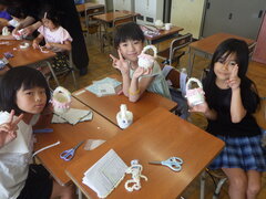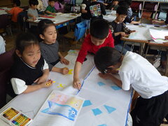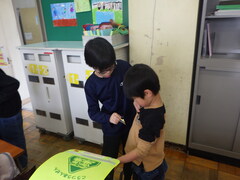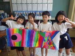 2年生は、今年も呑川の会主催の「呑川こども鯉のぼり祭」に参加します。今日、呑川の会の方に、デザインを考えて、丁寧にクレパスで塗り上げた手作りのこいのぼりを渡しました。呑川に飾られるのがとても楽しみです。