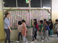 「呑川こども鯉のぼり大会」に2年生のこどもたちが参加します。一つ一つの作品に個性があふれ、見ているだけで笑顔になります。初夏の風にゆれるカラフルなこいのぼりたち、呑川の上を元気におよぐ様子を想像すると今から楽しみです。