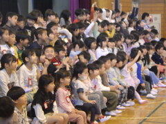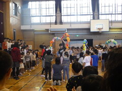 全校児童体育館に集まって、1年生を迎える会を行いました。池上小学校のいいところを伝えたり、池上小学校の先生クイズがあったり、各学年工夫を凝らした出し物がありました。みんなで歌を歌って1年生にプレゼントしました。体育館が暖かな雰囲気になりました。