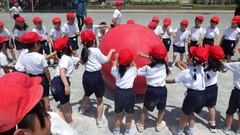 運動発表会に向けて、3時間目に1、3、6年生合同で大玉送りの練習をしました。練習をするうちに少しずつ大玉がスムーズに動くようになってきました。2,4,5年生は、23日に練習する予定です。