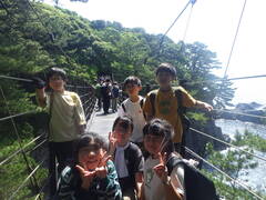 移動教室最終日です。ラジオ体操で始まり、その後は伊豆高原駅に、お土産を買いに行きました。相手を思いながらお土産を選んでいる姿が印象的でした。足湯でホッと一息。芝生広場でも体を動かして元気いっぱい遊びました。閉園式では共に過ごした相手校へ感謝の気持ちを込めてあいさつ。天気にも恵まれ、笑顔あふれる3日間になりました。