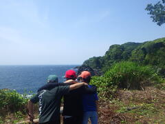 城ケ崎ハイキング。青い空と広がる海、心地よい風を全身で感じながら、自然の絶景に感動しました。スリル満点のつり橋の揺れも楽しみました。午後はキーホルダー作りに挑戦。自分で考えたデザインは思い出の一つになったことでしょう。開園10年記念イベントで、「ど」の文字をみんなのキーホルダーを集めてつくりました