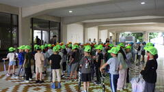 伊豆高原移動教室1日目はシャボテン公園を訪れ、珍しいサボテンや鳥、動物たちを間近で観察しました。特にクジャクが羽を広げる美しい姿に子供たちは感動していました。自然の魅力に触れ、楽しみながらグループで仲良く園内を見ていました。