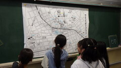 1年生を案内するための準備をしています。先生方からインタビューした内容を1年生に伝わるよう原稿をつくったり、伝える練習をしたりしました。